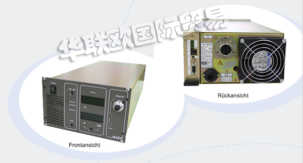 脈沖發(fā)生器RD 300與大多數(shù)ADL電源一起使用諧振開關(guān)原理。由于效率極高(30kW時為99.5%),該器件非常緊湊,僅產(chǎn)生高達(dá)150W的低功耗?,F(xiàn)有系統(tǒng)可以容易地改裝,因為發(fā)電機(jī)與DC電源并聯(lián)直接連接到陰極。該器件的工作頻率為2kHz。然而,對于外部信號發(fā)生器,頻率可以在0.2到3kHz的范圍內(nèi)變化。可以通過控制線連接多個發(fā)電機(jī),以實現(xiàn)自動同步。