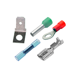 在電氣安裝技術(shù)中,電纜接線片通過螺釘(環(huán)、叉形)或插頭(扁平連接器)實現(xiàn)電纜和絞線的電氣連接)。通常需要線端套管將電纜固定在端子中。實心導(dǎo)體也可以通過將電線彎曲成孔眼直接擰上。對于絞合線的螺釘緊固,還有壓接環(huán),其中絞合線以環(huán)形插入。但是,也可用于此目的的焊接接線片不稱為電纜接線片。設(shè)計為環(huán)形或叉形的電纜接線片可通過螺釘夾緊接觸導(dǎo)電組件,螺釘連接到該組件并夾緊接觸一個和/或多個電纜接線片(管狀電纜接線片等)。插座的優(yōu)點是它們可以用來快速輕松地進行電接觸。例如,插座用于車輛中的接線。