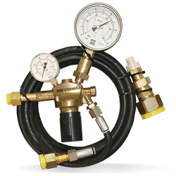 使用手持設(shè)備,可通過超壓直接從瓶子中向電氣設(shè)備填充SF 6氣體。減壓器的主壓力表以bar,psi和kPa為單位顯示氣缸壓力,副壓力表以填充壓力為單位顯示,可以使用調(diào)節(jié)手柄方便地進(jìn)行調(diào)節(jié)。集成的減壓器將瓶中的壓力降低到所需的填充壓力。