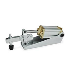 鉸接夾GN 861的構(gòu)造使其易于拆卸。軸承螺栓用擋圈軸向固定。這允許修改夾持臂以適應(yīng)任何特定應(yīng)用。為確保機(jī)械部件和氣缸的使用壽命延長,工作壓力不應(yīng)超過6 bar。此外,應(yīng)在空氣管路中安裝潤滑控制單元。鉸接夾GN 861可用作M型(磁性活塞)。與GN 896.3接近開關(guān)結(jié)合使用,可檢測終端位置,生成的信號可用于順序控制系統(tǒng)。用于夾緊螺釘GN 801的支架已開發(fā)用于與設(shè)計有叉形夾緊臂的肘節(jié)夾一起使用。
