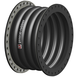 General Rubber的1102和1202型雙(2)寬拱形橡膠伸縮接頭的全方位運(yùn)動(dòng)能力是他們單拱形設(shè)計(jì)的兩倍,而彈簧剛度只有他們的單拱形設(shè)計(jì)的一半。此外,它們還設(shè)計(jì)用于降低噪音和振動(dòng),循環(huán)壽命可達(dá)數(shù)千萬(wàn)次,可補(bǔ)償錯(cuò)位,方便進(jìn)入管道和設(shè)備,并減輕管道和錨固應(yīng)力。其卷筒式主體由全橡膠法蘭、高級(jí)防漏管、多層高強(qiáng)度輪胎簾線、高強(qiáng)度鋼加固、無(wú)縫蓋和熱浸鍍鋅鋼固定環(huán)構(gòu)成。這種結(jié)構(gòu)作為獨(dú)立的伸縮接頭,在具有主錨(MA)和特定間距的多個(gè)導(dǎo)軌的剛性管道系統(tǒng)中使用時(shí),是最具成本效益的布置。控制單元可以外部或內(nèi)部連接,并用作二次約束的限位桿,或在支撐結(jié)構(gòu)或相鄰設(shè)備具有負(fù)載限制時(shí)用作拉桿。