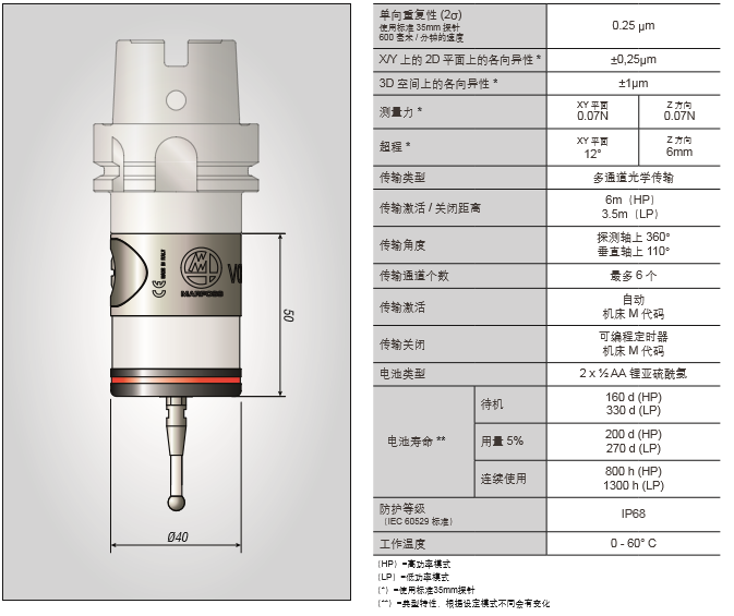MARPOSS測頭VOP40L可以兼容所有馬波斯VOS和E83系統(tǒng),可以將高性能和堅(jiān)固的結(jié)構(gòu)結(jié)合起 來,使之適用于連續(xù)暴露在冷卻液和鐵屑中,以及高溫的加工苛刻環(huán)境。VOP40L適用于車床和各種尺寸的車削中心。它結(jié)合了緊湊的設(shè)計(jì)和堅(jiān)固的建構(gòu)。該系統(tǒng)是被設(shè)計(jì)用來與集成接口的VOI光接收器配套,但也向后兼容馬波斯E83系統(tǒng),這意味著現(xiàn)有的系統(tǒng)可以快速和容易地升級。