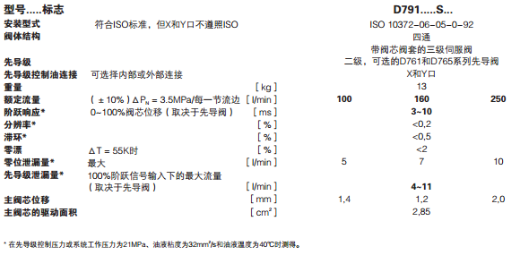 MOOG伺服閥D791系列可通過差壓式線性位移傳感器進(jìn)行閥芯位置閉環(huán)控制反饋,無耗損;集成式的SMD放大器帶極性保護(hù),通過閥體中的第五和第六油口可選擇外控貨外排控制。