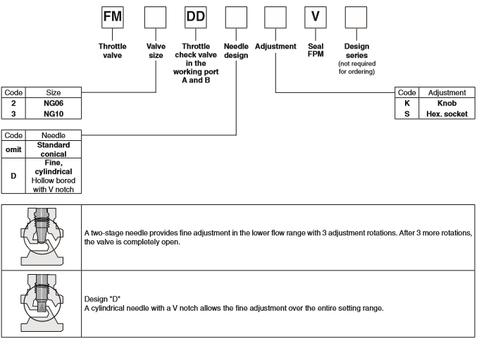 PARKER流量控制閥FM系列是采用夾層設(shè)計,節(jié)流閥和單向閥設(shè)在端口A和B,F(xiàn)M2和FM3可以用作節(jié)流或通過改變安裝位置節(jié)流節(jié)流閥。兩種類型的計量針的設(shè)計可在訂貨FM2和FM3閥來實現(xiàn),以適應(yīng)應(yīng)用程序所需的油門特性時。