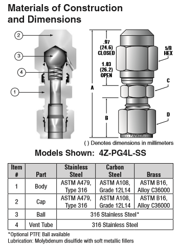 2、 可選聚四氟乙烯球僅需要手指擰緊扭矩,以達到一個防漏密封